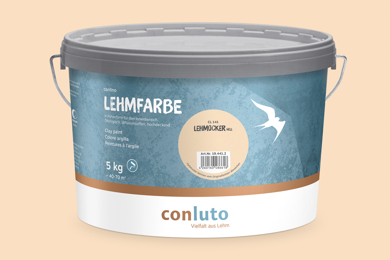 Die Conluto Lehmfarbe bildet eine tuchmatte Oberfläche und besitzt ein gutes Füllvermögen. Sie kann auf alle saugfähigen und festen Untergründe mit der Lammfellrolle oder im Kreuzschlag mit der Deckenbürste aufgebracht werden.